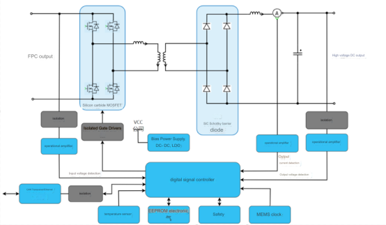 The charging pile core is a basic AC-DC converter. It consists of PFC stage, DC bus and DC-DC module